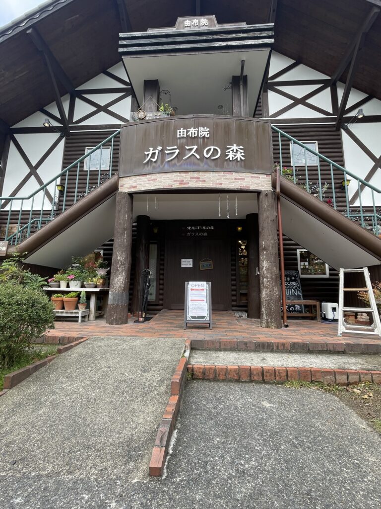 本日は大分県由布市湯布院町にございます、由布院ガラスの森様の店舗入り口、軒天井塗装工事の様子をご紹介します。